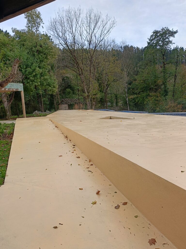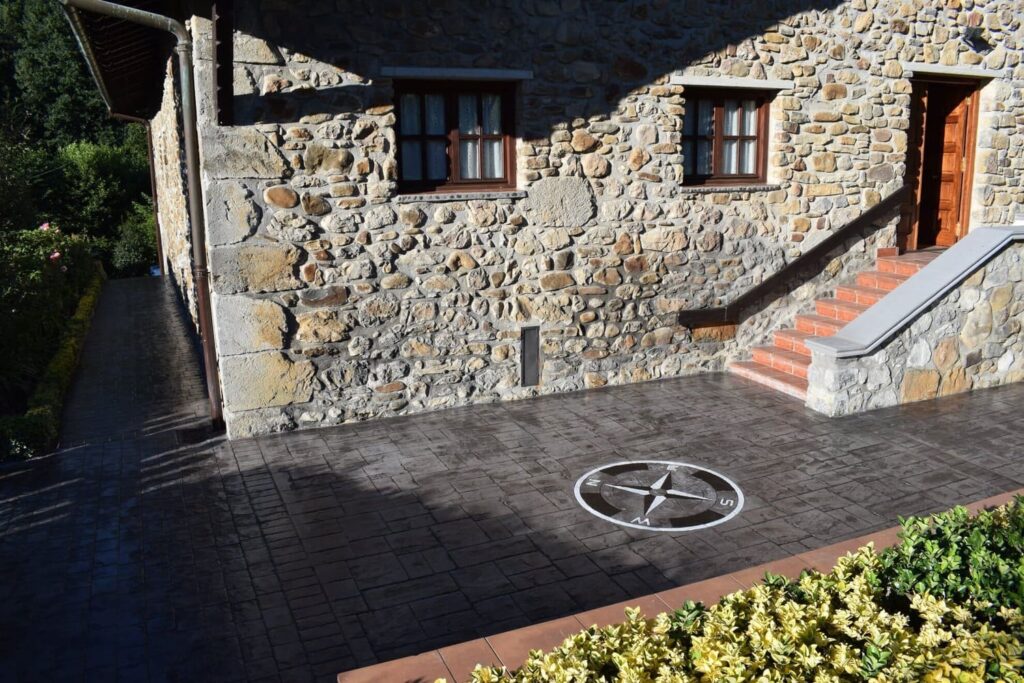 - Hormigón Impreso: Instalación de pavimentos decorativos para exteriores, jardines y terrazas, incluyendo diseños personalizados como el adoquín con diseño Lauburu.